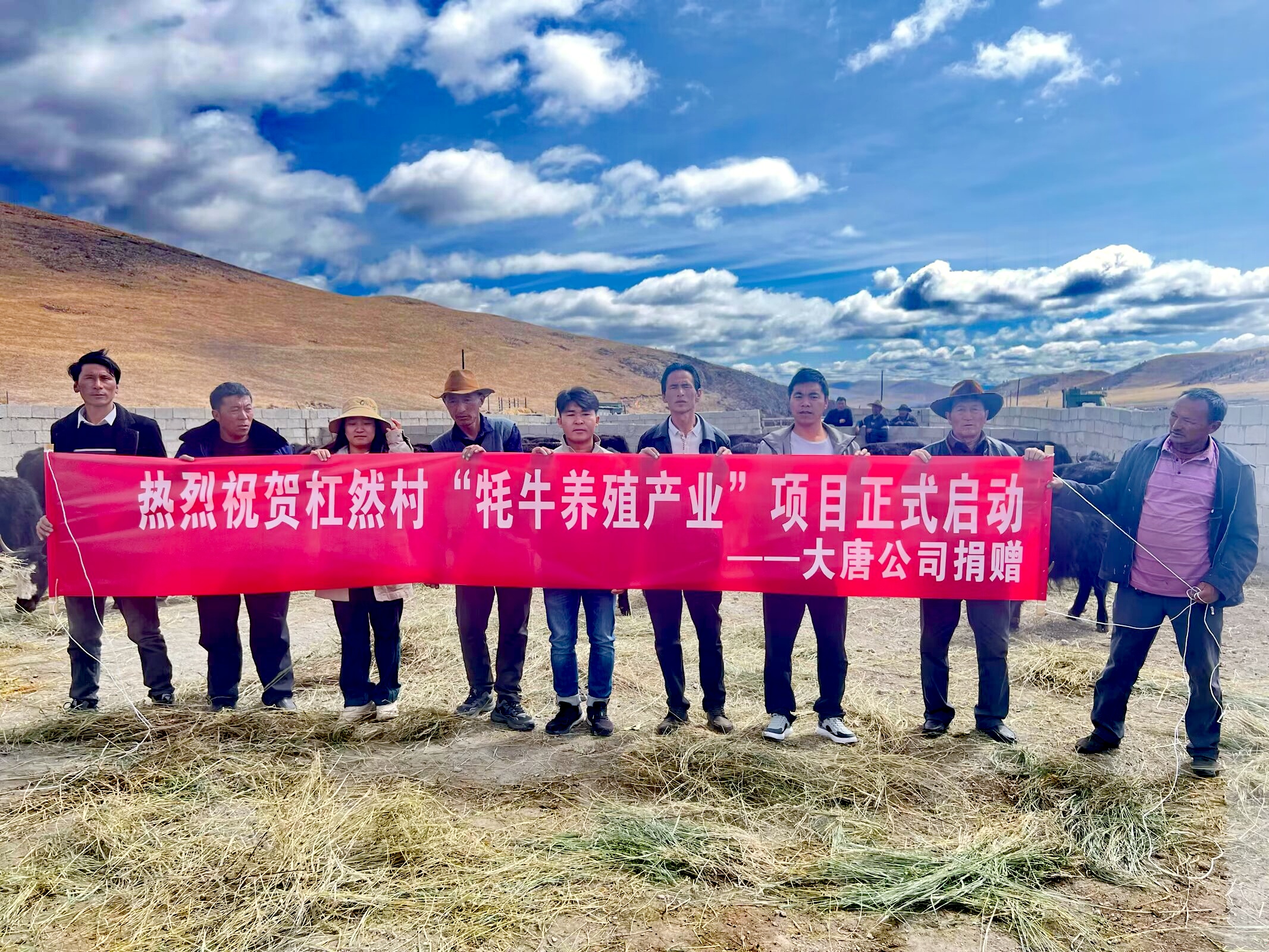 这是大唐乡城(得荣)水电开发有限公司的大唐四川公司驻村工作队按照2024年乡村振兴帮扶工作部署要求在杠然村推进实施的牦牛养殖计划。2024年以来,驻村工作队坚持因地制宜原则,在充分调研论证的基础上,积极与驻地各级党政对接沟通,科学合理布局乡村振兴项目,在反复论证并取得批复的情况下,按照“大唐出资+村集体所有+村民户获利”三方参与原则,投入45万元购买了70余头4-6岁牦牛作为村集体产业发展牦牛养殖。买来的牦牛由村集体通过村民大会选举有牦牛养殖经验的饲养户采取前期放牧加补饲,后期圈养育肥的喂养方式进行养殖,每年实行集体分红。旨在通过两年的产业建设发展,努力形成牦牛产业集群“一核、两片、多点”的产业布局,为下一步助力全县发展多功能大循环农业、智慧农业、有机农业发展奠定基础。据估计,该牦牛养殖项目每年可为每户村民增收1000元。