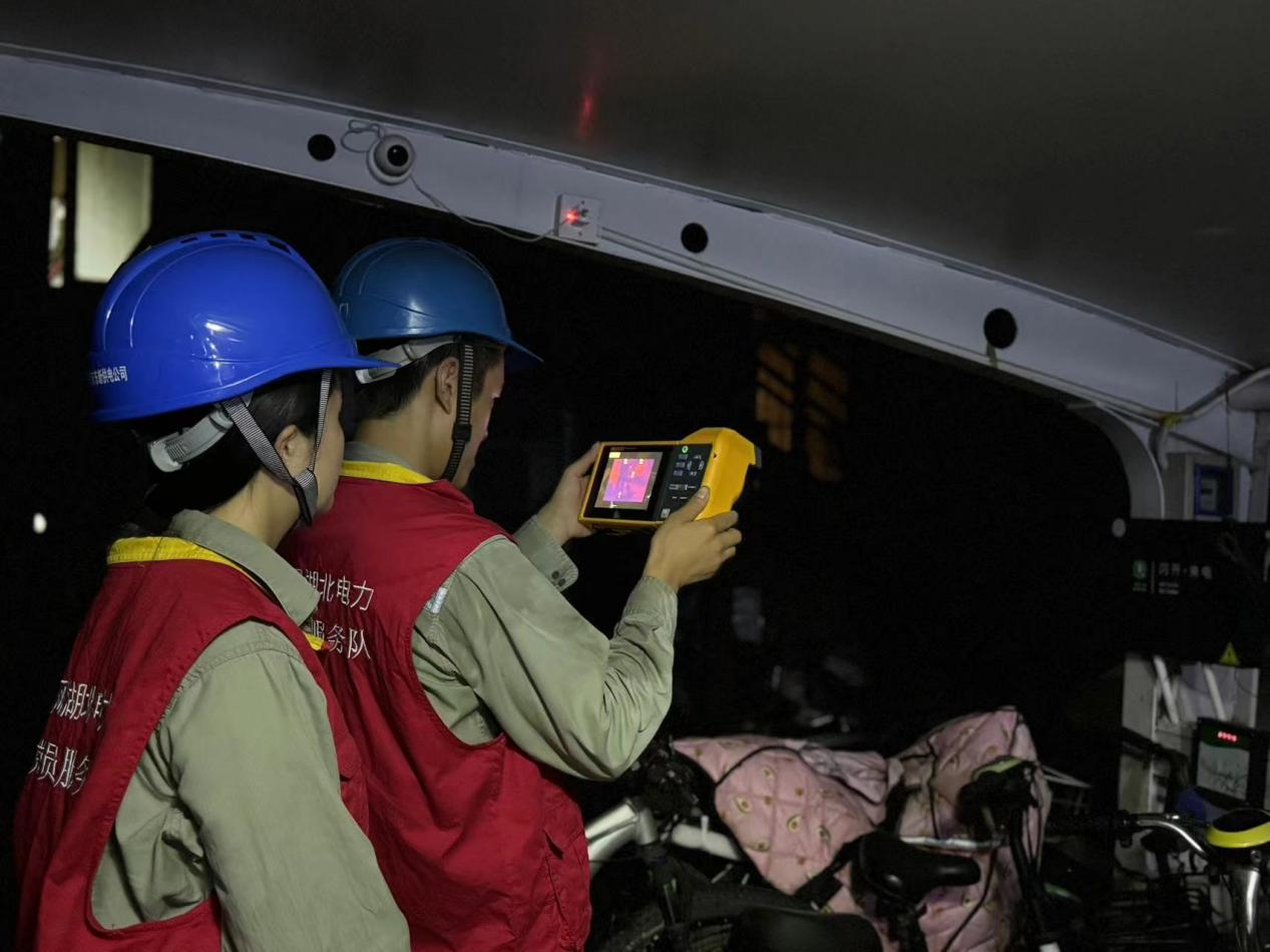 夜色中,他们身穿醒目的工作服,头戴安全帽,手握手电筒和测温仪,如同夜色中的“侦察兵”,一步步地排查着电力线路、开关柜、电缆分接箱、端子箱等关键设施。他们的眼神专注而坚定,每一次测温都仿佛是在与时间的赛跑,争取在故障发生之前将其扼杀在摇篮之中。