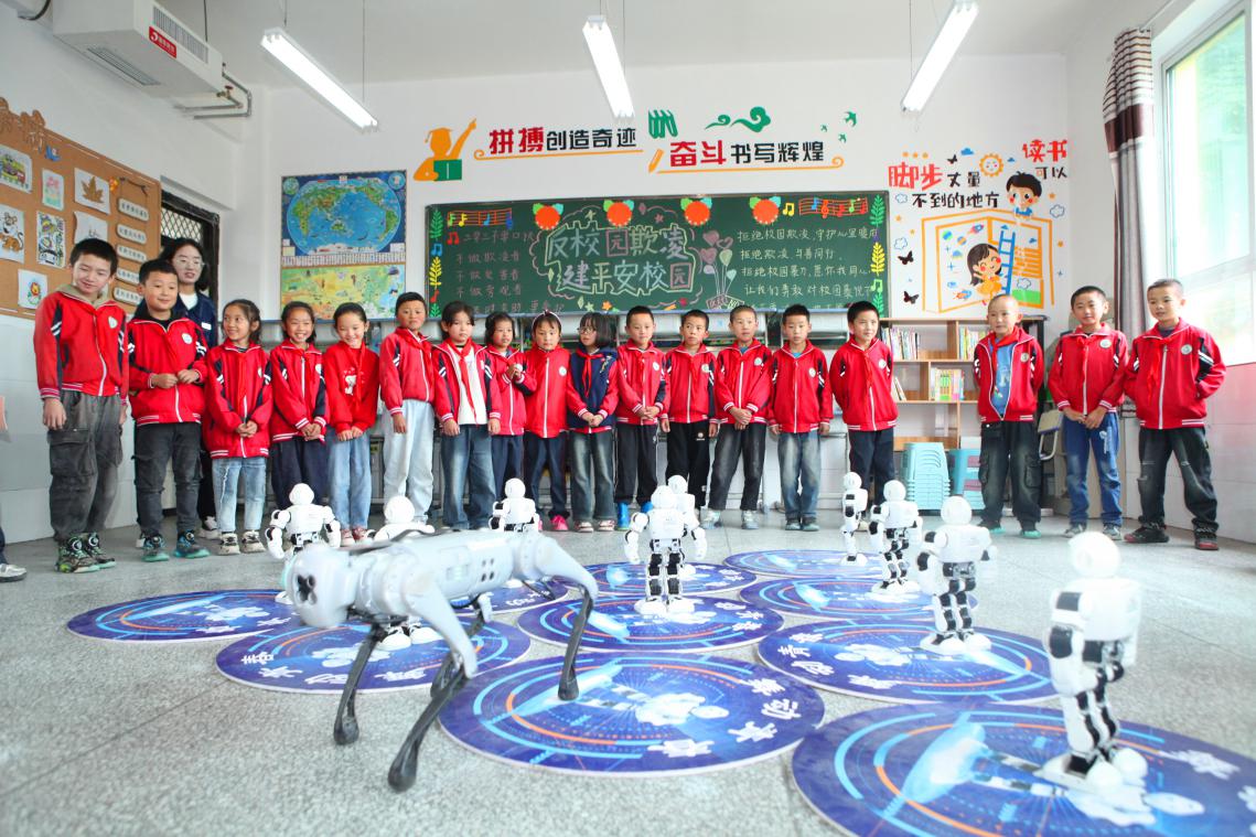 “哇,快看,那个机器人还挺灵活的,居然能随着音乐的节奏跳舞......”在科普成果展现场,一条机器狗正在工作人员的操作下做出跑步、跳跃、转身、打滚等各种憨萌动作,时不时做出穿进人群的架势,现场欢声笑语一片。机器人在“舞动青春”字样的圆形垫子上伸胳膊、蹬腿,学生竞相模仿,使活动走向高潮。