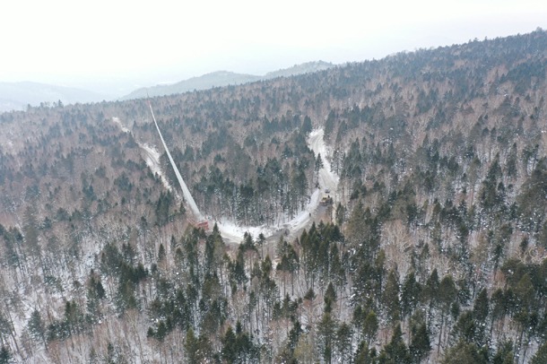 去年,项目组成员好不容易拿到开工许可审批手续,沉浸在喜悦之中,一个巨大的难题悄然浮现:如何在不破坏森林植被的前提下,将长九十多米、重达几十吨的叶片安全、完好地运送到机位。为此,他们四处联系行业内同仁,寻求经验借鉴,并邀请多家大部件运输公司到现场实地勘察。在会议室里,大家展开了激烈的讨论,一份份运输方案应运而生,方案也一次次被无情否定。
