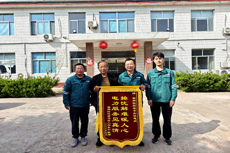 中国能源新闻网讯(王学胜)4月9日上午,山东潍坊临朐石家河生态经济发展服务中心枣行村退伍老人白永利,来到山东潍坊临朐供电公司寺头供电所石家河服务站,将一面印有“排忧解难暖人心、电力服务见真情”的锦旗送给供电所长艾雪、台区经理谭胜,一再向他们表示感谢。