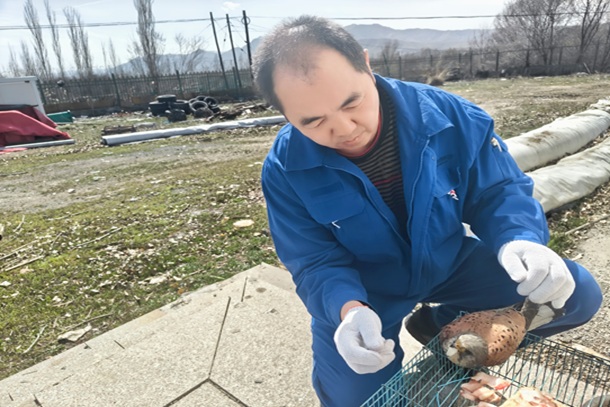 晚霞染红天山雪线时,红隼体征明显改善,吉林台公司十几个蓝色身影挥手送别小生命。尼勒克县野生动物救助中心转运车的恒温箱里,命名为“小太阳”的红隼爪子上系着橘色编码环,正在啄食最后一块来自吉林台公司食堂的肉糜。