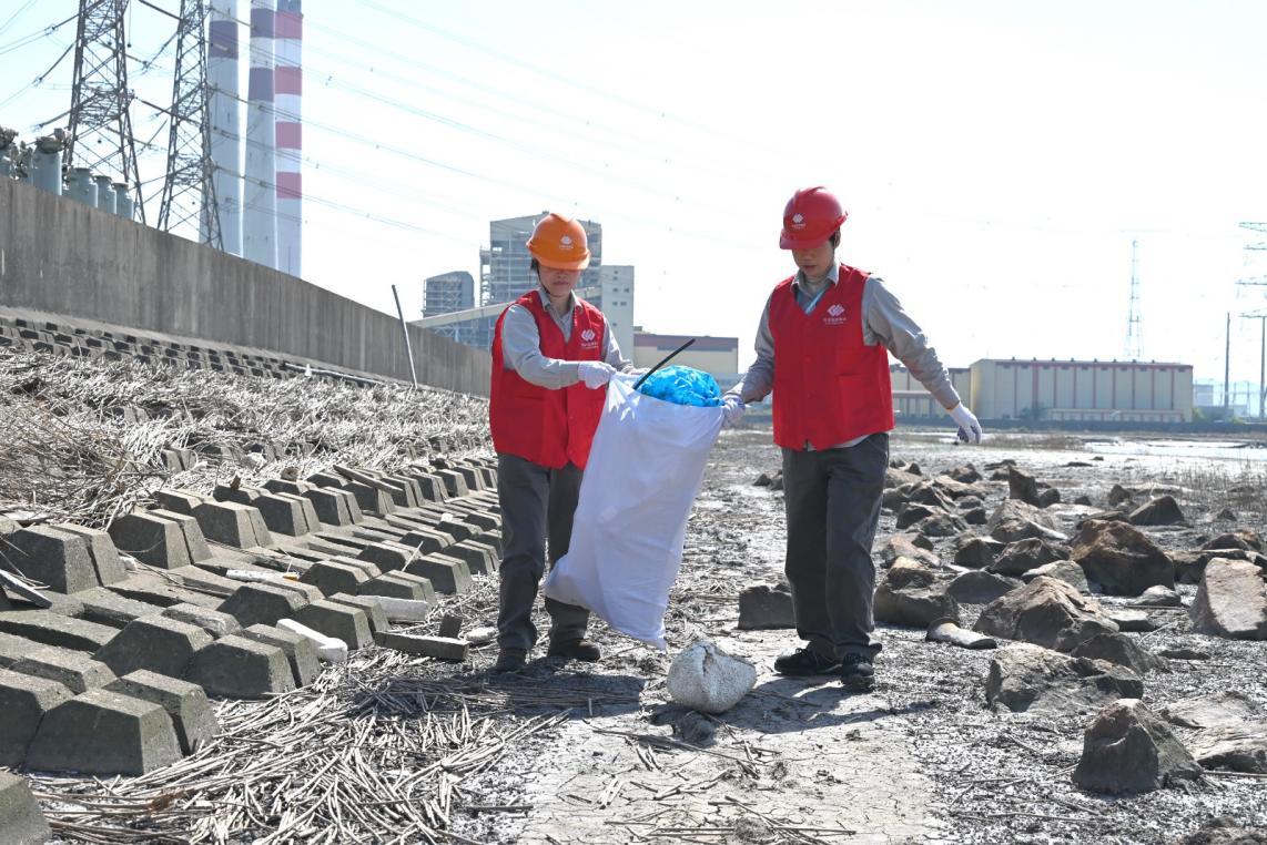 北仑电厂志愿者捡拾垃圾。
