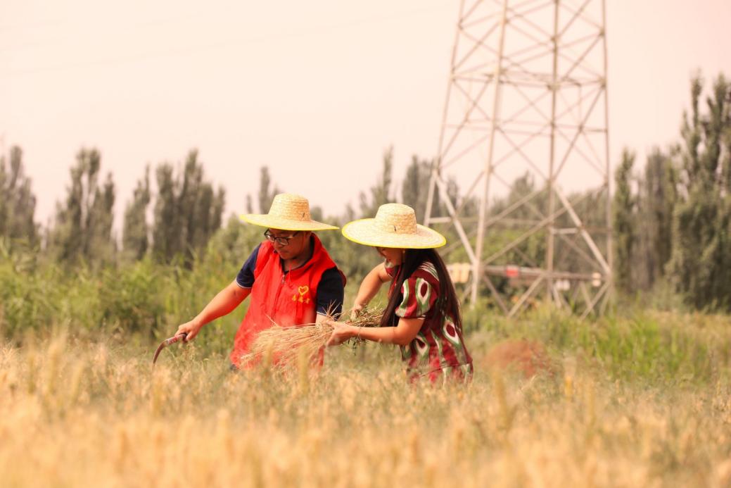 国家能源集团驻村工作队在田间与村民一同劳作助力麦收。