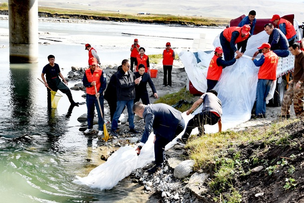 岸边,年逾七旬的哈萨克族老人沙勒克江・依明拄着拐杖,目光紧紧追随着远去的鱼群。作为这片草原变迁的见证者,他感慨道:“河水记得一切。这些年,年年都见你们来放鱼苗,河水里的‘银色影子’确实越来越多了。鱼儿回来,河就有了灵魂。”老人的话朴素真挚,道出了十六年守护最珍贵的回响——生态的脉搏正在复苏、愈发强劲。