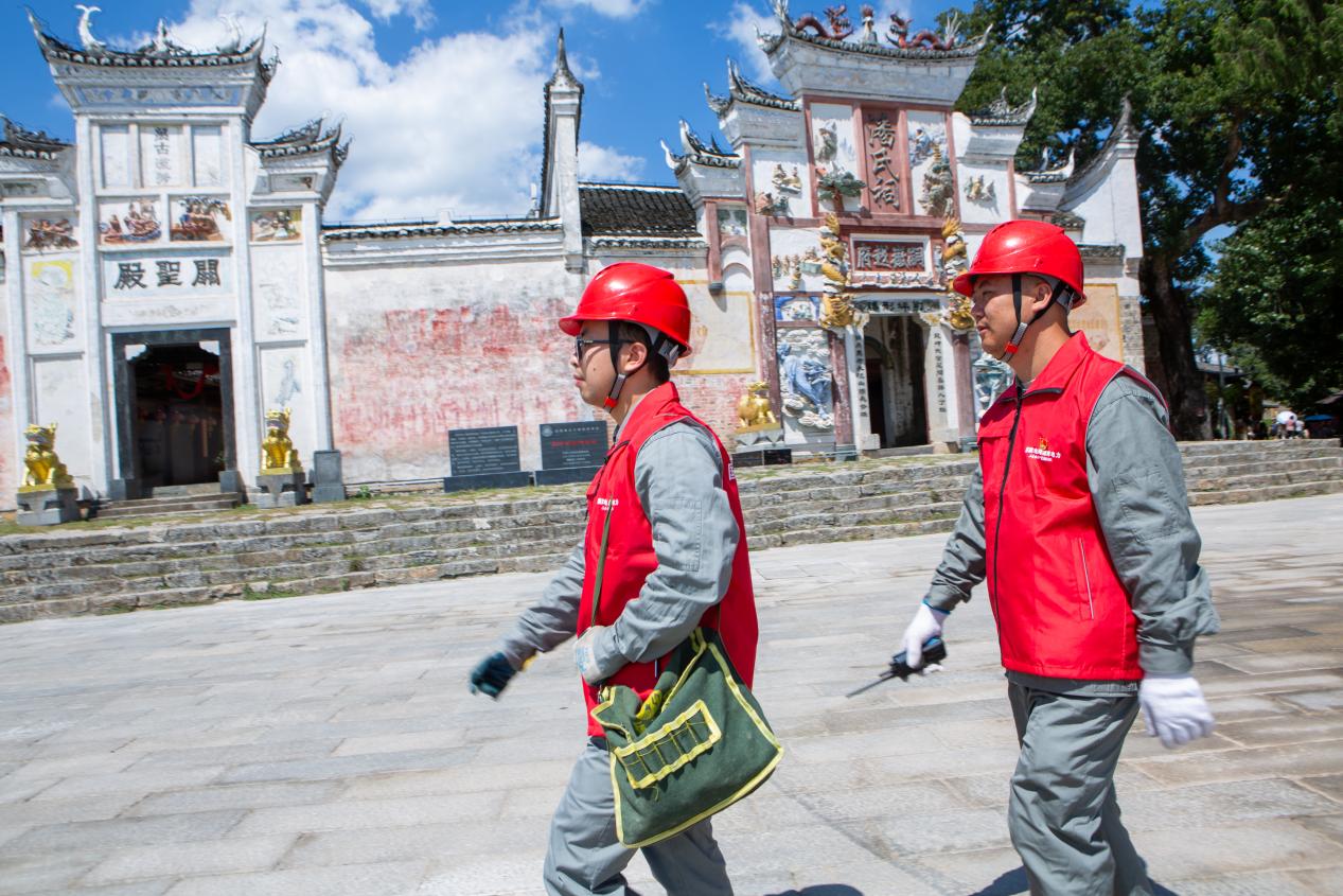 “今天游客特别多,空调、厨房电器全在满负荷运转,多亏你们上门检查,这下我们用电更放心了!”荆坪古村一家民宿负责人王女士对检修人员说道。此次专项检查中,工作人员采取“分片包干、逐户排查”的方式,对古村内的公共供电线路、配电箱、接地装置等关键设备进行“拉网式”细致检查,重点排查线路老化、接头松动等潜在安全隐患,对发现的问题现场制定整改措施,立即开展维修更换工作,确保隐患当场闭环。同时,针对民宿、农家乐厨房电器密集、用电需求集中的特点,工作人员逐一检查电器设备的绝缘性能和线路连接情况,现场普及安全用电知识、节能技巧和突发断电应急处置方法,切实提升经营户的安全用电意识和应急能力。