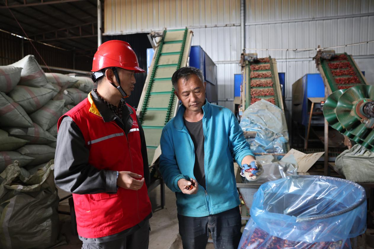 国家电网重庆电力(彭水)红岩共产党员服务队了解加工厂生产情况。储潇 摄