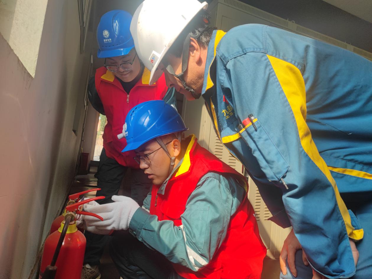 国网海东供电公司“电韵河湟”大客户义诊服务队队员在青海鸿利通金属科技有限公司排查客户配电室消防设施。穆萍 摄
