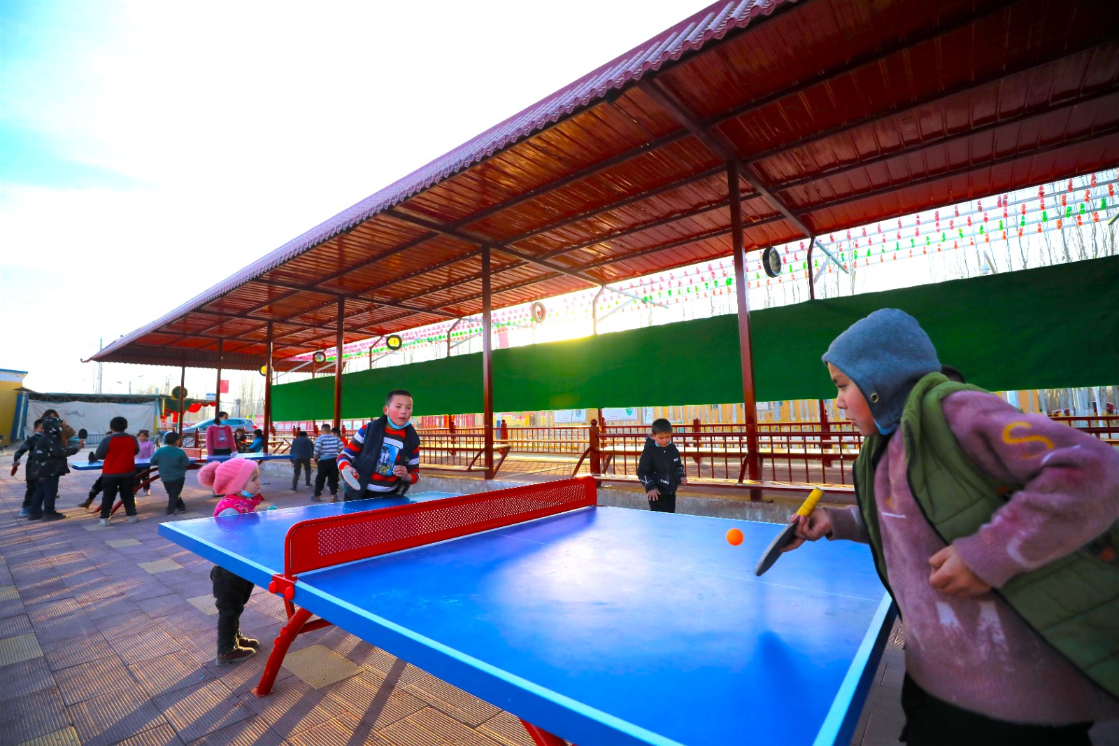 孩子们在夏玛勒巴格村惠民文化广场欢快地玩耍。