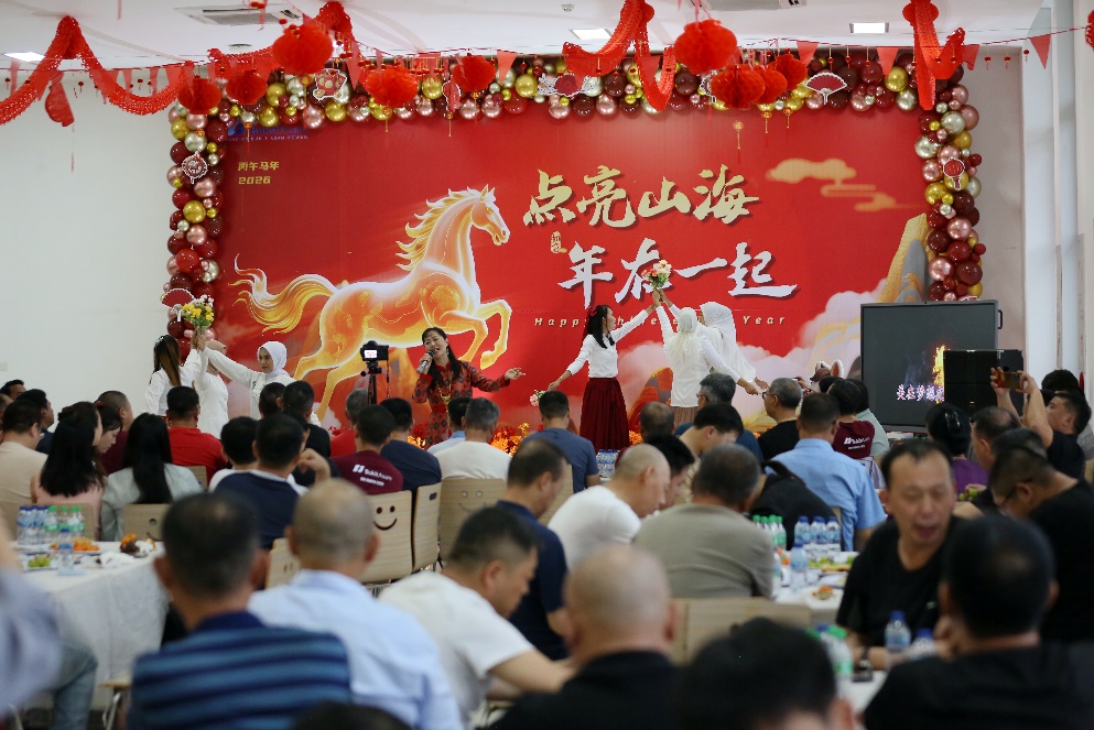 新春联欢会分为包饺子DIY、领导致词、文艺表演、幸运抽奖、同心合唱等环节,中印尼员工精心排练、倾情演绎,男声独唱、女声对唱、诗朗诵、创意舞蹈、歌舞串烧等节目轮番登场,现场笑声、掌声交织一起,喝彩声、助威声此起彼伏,演员活力四射,观众热情满满,饱含着广大员工和家属对新的一年的美好向往和对企业高质量发展的坚定信心。虽然中印尼员工语言不同、习俗各异,但对美好生活的向往和对职业发展的追求却是相通的,大家用共同的歌声,跨越国界,传递心愿。