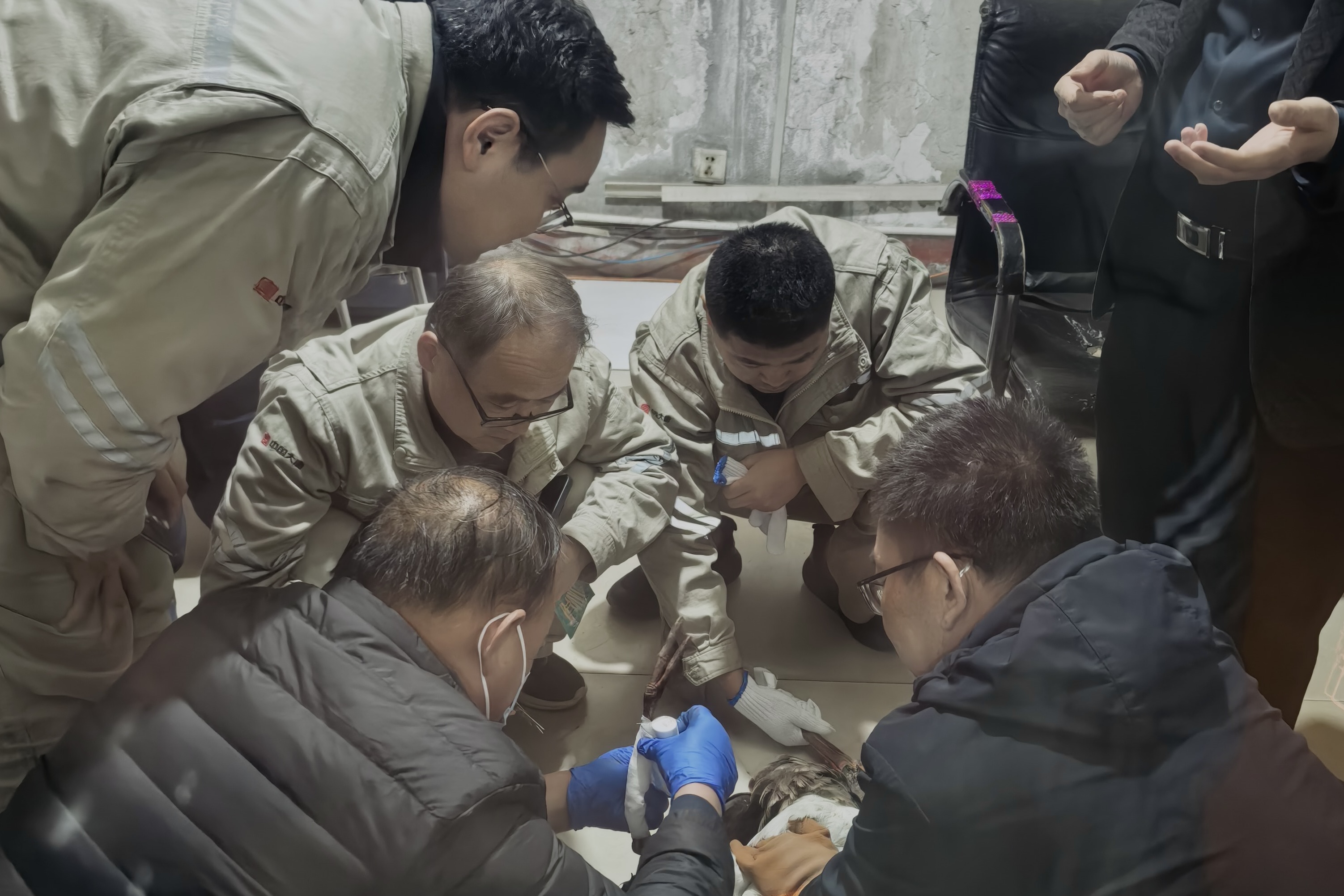 该公司得知情况后,迅速与长武县林业局取得联系,确认该鸟为素有“鸟中大熊猫”之称的国家一级重点保护动物黑鹳。长武县林业局立即带领兽医和工作人员赶到现场,对黑鹳双腿进行清洗和包扎,并将其带回救助站进行进一步专业救治。