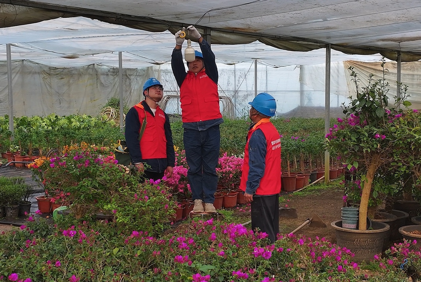 服务队对种植基地配电线路、灌溉设备、温控系统、补光设施等进行细致排查,重点检查线路敷设是否规范、设备是否存在老化隐患,现场整改线路不规范、设备老化等问题。向花农宣传大棚安全用电知识、潮湿环境用电注意事项,切实防范电气火灾事故,全面提升农户用电安全意识。