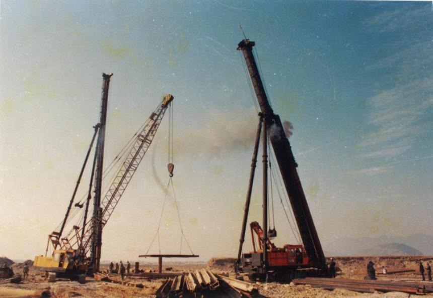 一期工程主厂房打下第一根钢桩。