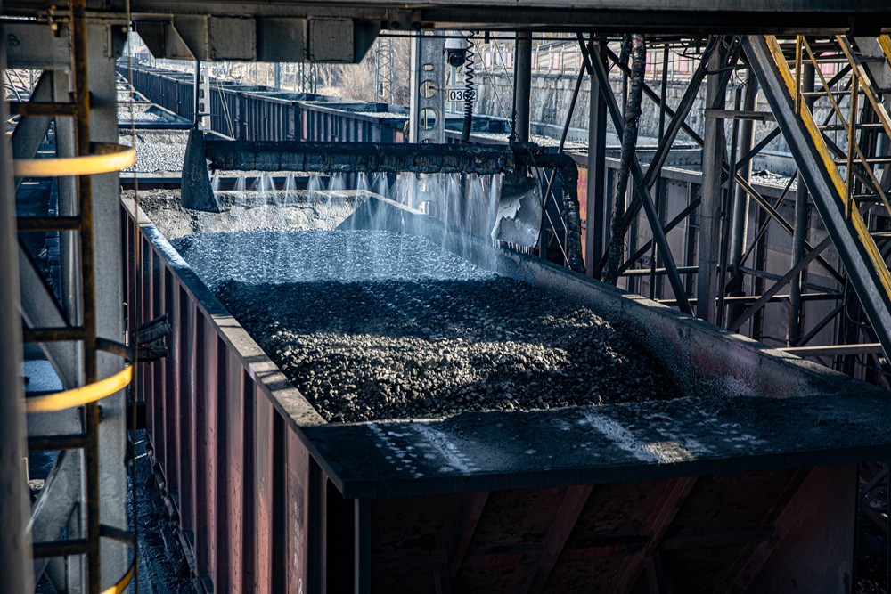 准能集团选煤厂装车降尘现场。