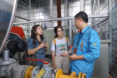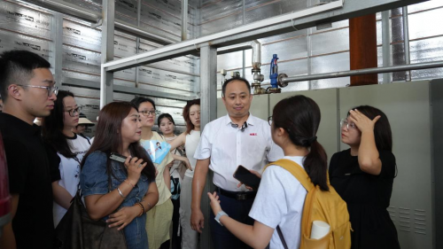 媒体团在锅炉房采访螺霸王有关负责人。