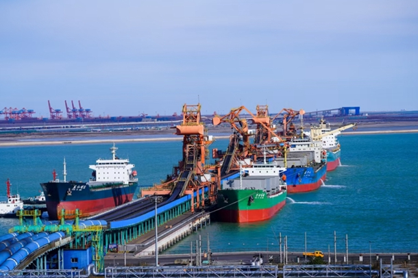 销售集团组织的煤炭资源在黄骅港装船作业。