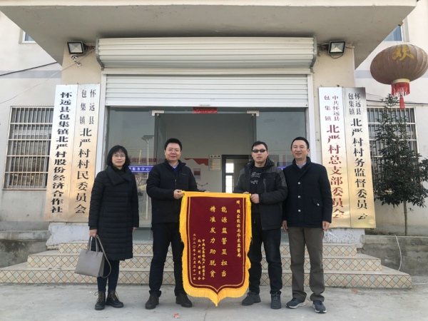 北严村村委对华东能源监管局一直以来为北严村脱贫致富理思路、想点子、出实招,协调资金解决道路亮化、道路平铺等帮扶工作表示感谢,并向华东能源监管局捐赠了“能源监管显担当精准发力助脱贫”的锦旗。