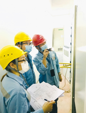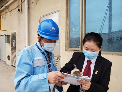 疫情防控期间,供电人员对黄埔区一家医疗企业的增容报装业务进行现场勘查,加快电力供应。
