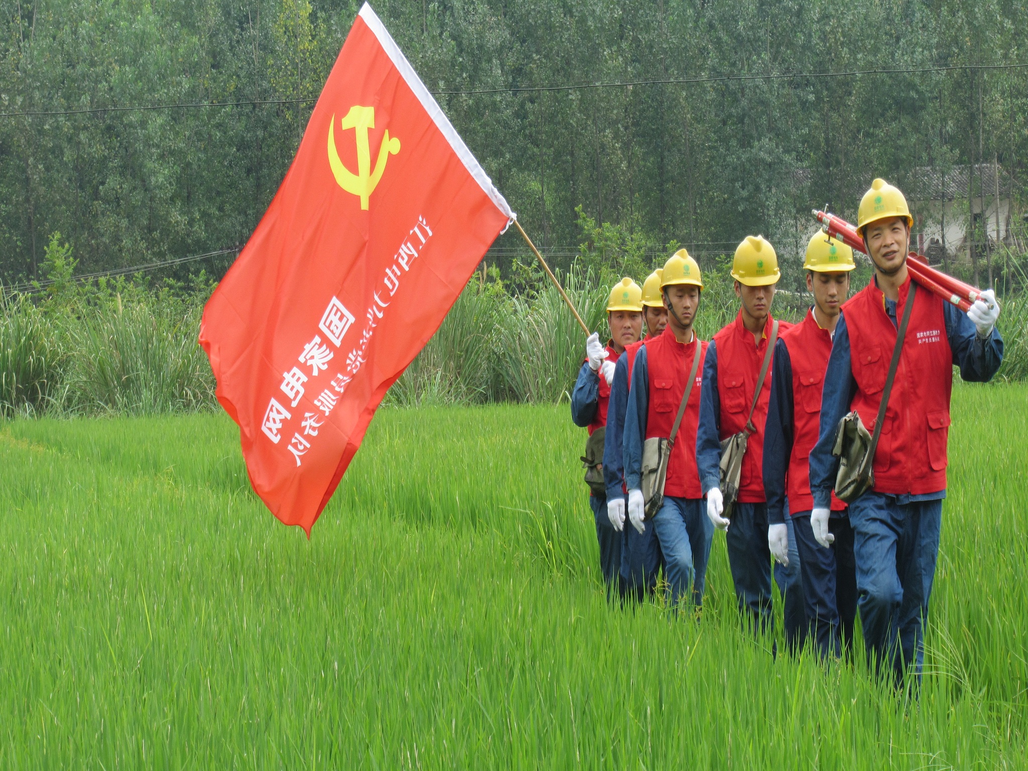 2014年8月的一天,一网络公司在店前村保里组进行网络架线,钢绞线触碰到保里台区380伏线路,台变上的总保跳闸,保住了五六名在田里打赤脚施工人员的生命。