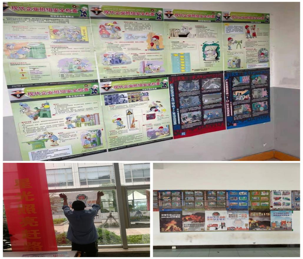 3、在职工工作、休息、用餐区域粘贴安全生产宣传挂图,实现所有区域全覆盖,强化“安全”印象。