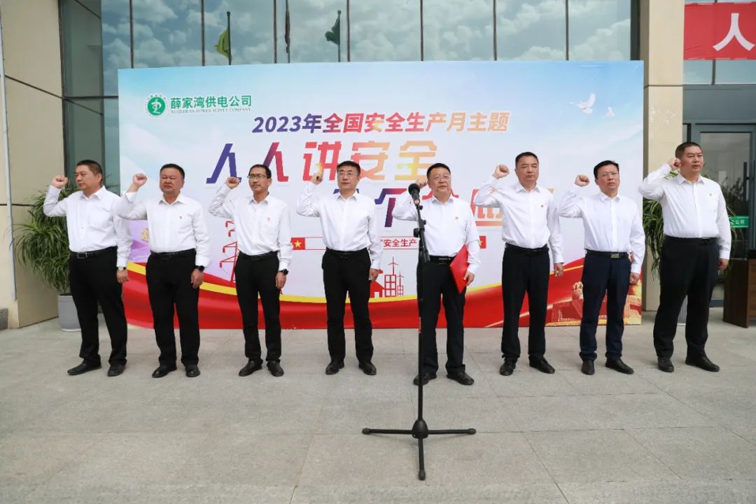 随后举办了薛家湾供电公司2023年“安全生产月”活动启动仪式。薛家湾供电公司总经理、党委副书记冯德作动员讲话,党委书记、副总经理刘超轶主持仪式。活动主会场全体人员进行安全生产责任宣誓与“人人讲安全 个个会应急”主题签名。