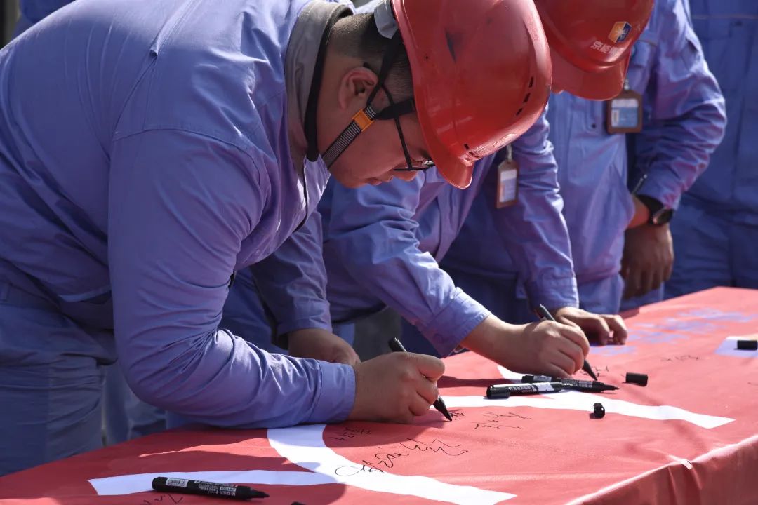 6月1日,京宁热电举行“安全生产月”启动仪式,公司领导班子成员、各部门及外委单位人员加了启动仪式。公司党委书记、执行董事孙志强做动员讲话,并带领全员完成安全承诺签名,增强全员对做好安全工作的决心。