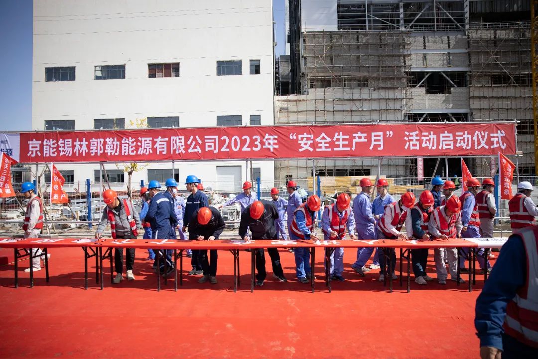 5月31日,锡林能源2023年“安全生产月”启动仪式隆重举行。公司主要领导就安全月活动方案和要求做了详细部署,参建单位代表进行了表态发言,承诺遵守安全法规,履行安全职责,严守规章规程,提高安全技能。全体与会代表进行了集体宣誓,并在安全月主题条幅上签字承诺。