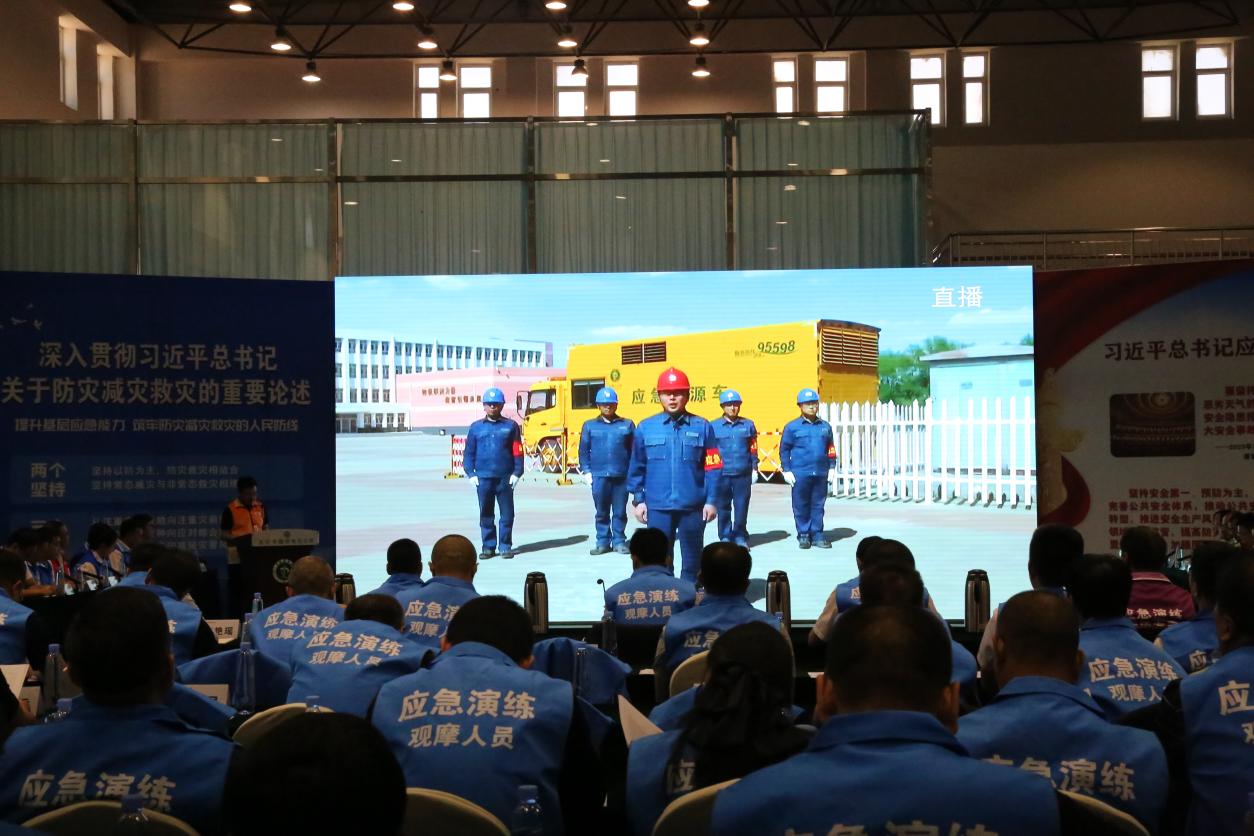 本次演练采取“桌面推演”和“模拟实战”的方式,设置主会场1个,直播现场2个,共计120余人现场观摩演练。