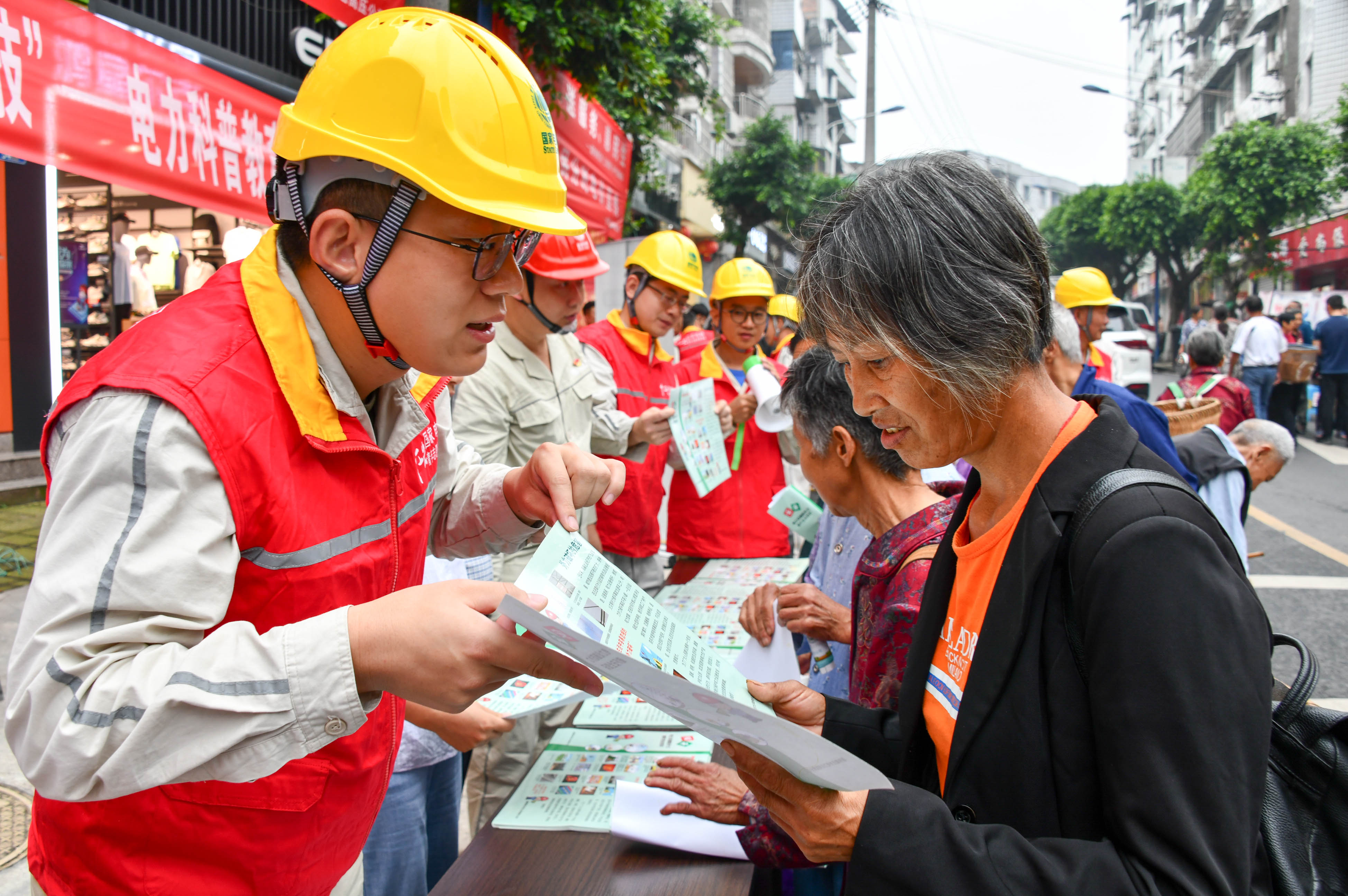 图为国网重庆江津供电公司工作人员向居民讲解电力保护知识。王化全 摄