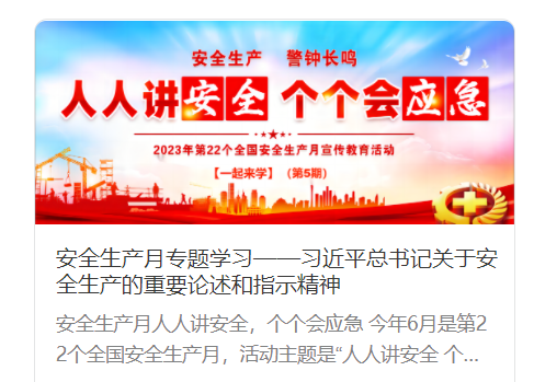 紧扣“人人讲安全、个个会应急”主题,在公司各处宣传栏张贴海报110张、宣传横幅18个;运用公司公众号开设“安全生产月专题学习-学习贯彻习近平总书记关于安全生产的重要论述、安全生产法”专栏,集中贯彻;采取以班组长为授课人的各班组之间交叉授课活动,通过大家互相学习,管理人员进行点评,对讲的好的员工进行表扬,指出不足之处及改进方法,全面提升员工安全技术能力,营造“比、学、赶、帮、超”良好氛围。