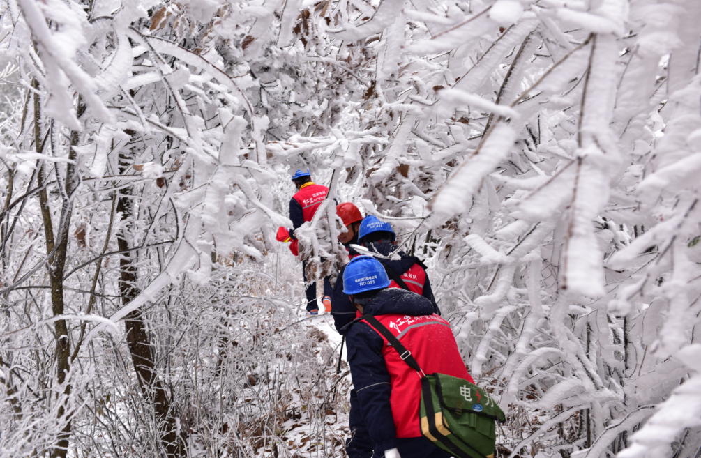 ▲国网重庆电力员工在南天湖镇巡检110千伏线路