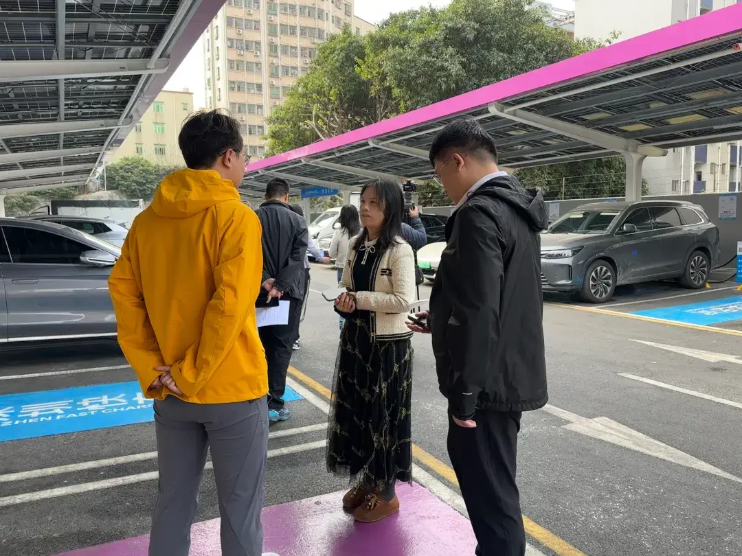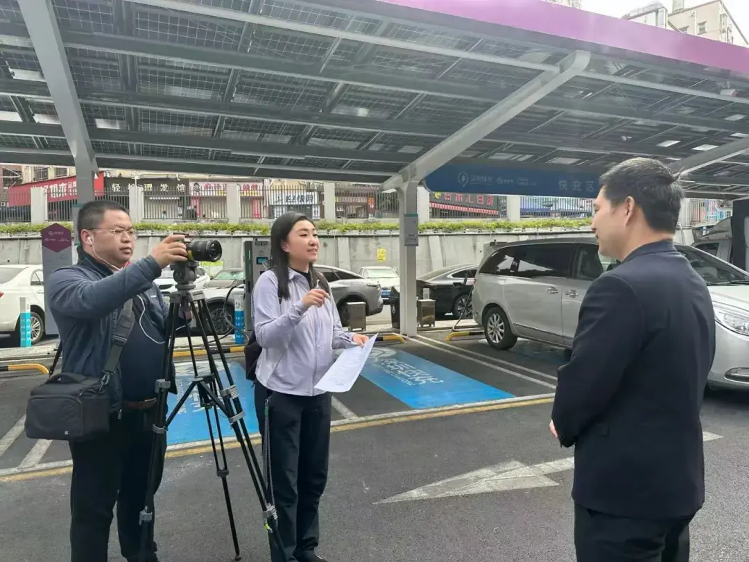 ▲南网新闻中心记者黄雅熙采访深圳车和光新能源投资有限公司投资方案事业部总经理陈瑨。(钟倩灵摄)