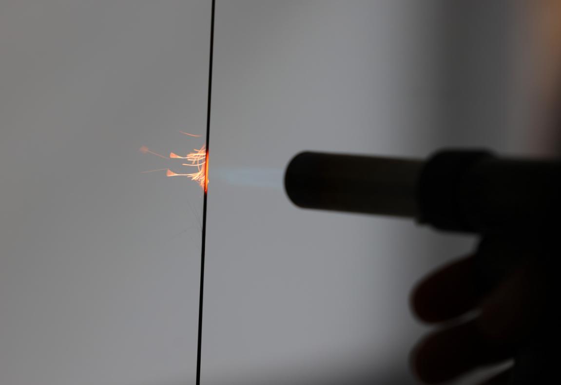 1月10日,工人在山西省大同市一处实验室演示碳纤维耐火烧测试。朱兴鑫摄