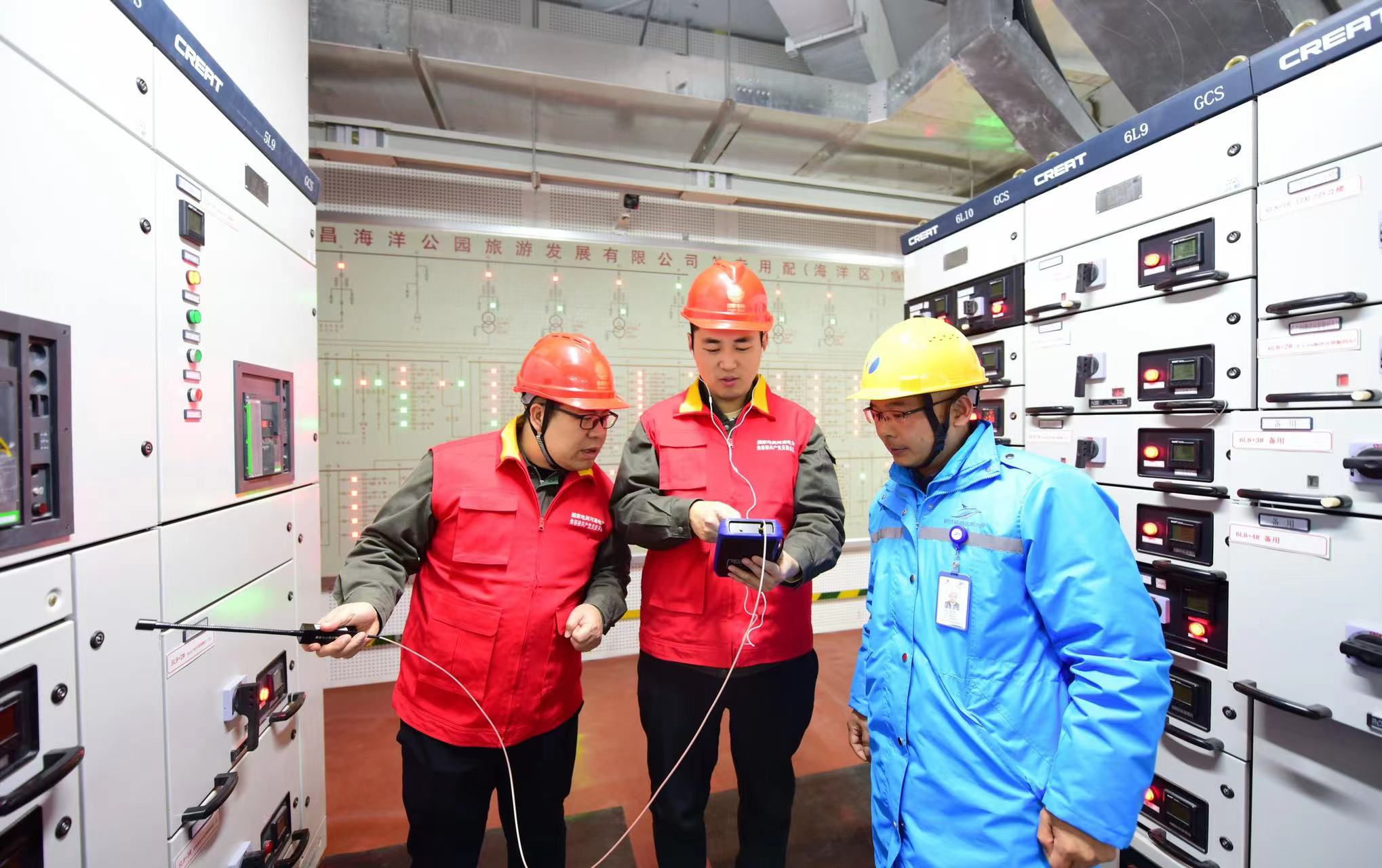 郑州海昌海洋旅度假区是中原地区重量级的海洋文化旅游度假区,该园区位于中牟县大孟镇平安大道,占地约42.5万平方米,是中原首个海洋文旅度假区,共展示500余种、5万余尾海洋、极地生物。今年春节该园区要举办“‘海’有好兆头 龘龘过大年”系列主题活动,也是该旅游度假区第一个游客接待高峰期,国网中牟县供电公司第一时间对接该旅游度假区工作人员,组织技术人员前往该旅游度假区,对度假区内设备开展全方位“把脉问诊”,同时对该旅游度假区周边主供线路、分接箱进行全面系统的检查,跟踪消除安全隐患。